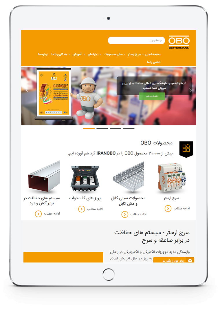 توضیحات پروژه: پروژه وب سایت شرکت ایران OBO در زمینه فروش محصولات OBO در ایران توسط شرکت مشاورین انفورماتیک بینا طراحی و پیاده شده است. این پروژه دارای امکاناتی همچون دیجیتال مارکتینگ، سئو، بهینه سازی برای موتور های جستجو، طراحی قالب، معرفی خدمات و محصولات، خبرنامه، شبکه های اجتماعی و… می باشد. پیشنهاد می کنیم برای کسب اطلاعات بیشتر در رابطه با این پروژه با ما در تماس باشید و بر روی دکمه مشاهده نمونه کار کلیک نمایید.