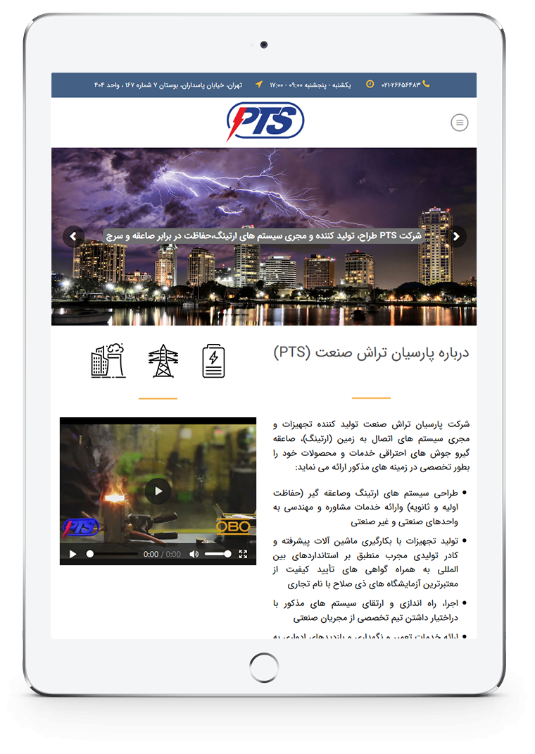 پروژه وب سایت PTS در زمینه مجری و طراح پروژه های صاعقه گیر توسط شرکت مشاورین انفورماتیک بینا طراحی و پیاده شده است. این پروژه دارای امکاناتی همچون دیجیتال مارکتینگ، سئو، بهینه سازی برای موتور های جستجو، طراحی قالب، معرفی خدمات و محصولات، خبرنامه، شبکه های اجتماعی و… می باشد. پیشنهاد می کنیم برای کسب اطلاعات بیشتر در رابطه با این پروژه با ما در تماس باشید و بر روی دکمه مشاهده نمونه کار کلیک نمایید.